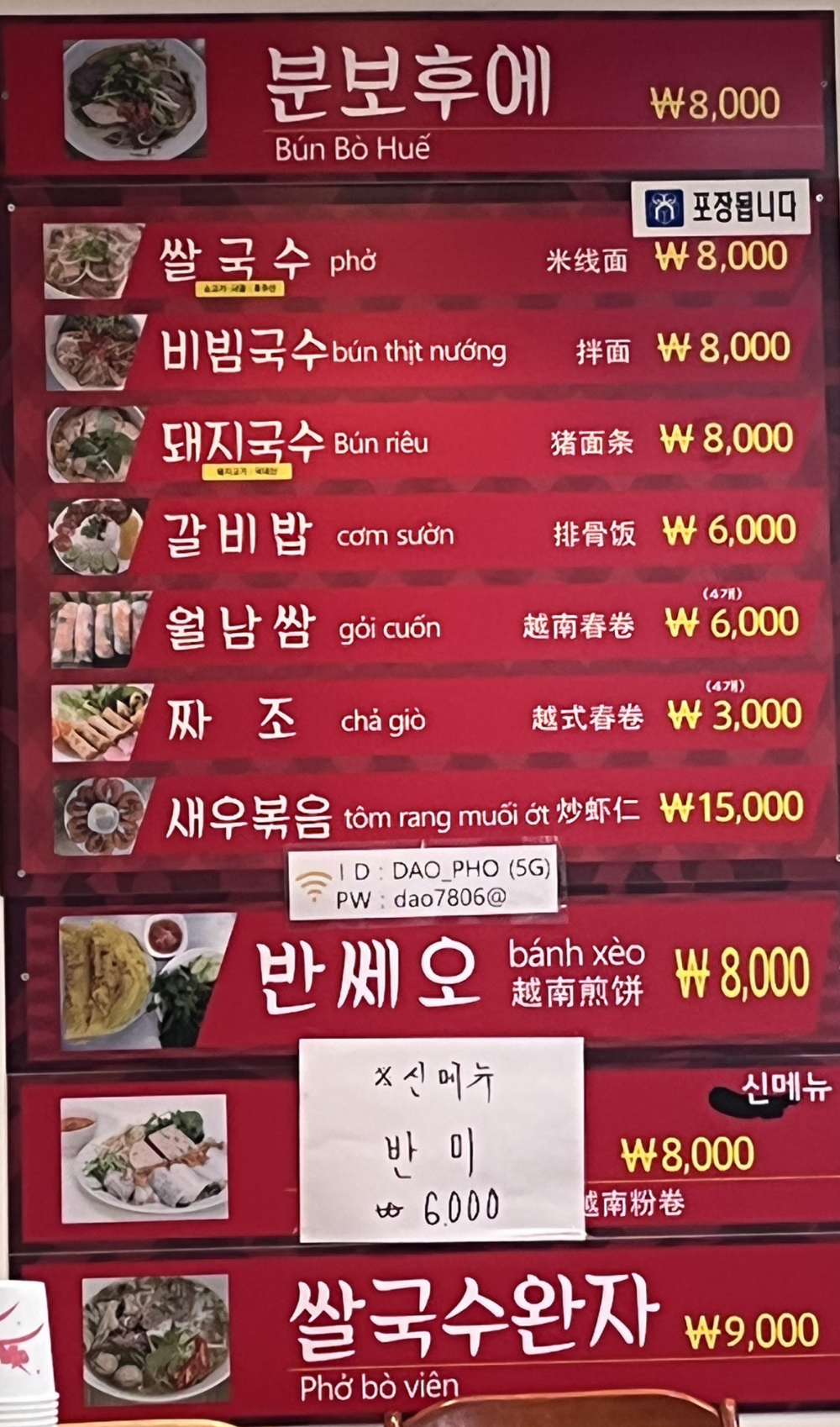 메뉴가 다른 쌀국수집 처럼 다양하진 않아요